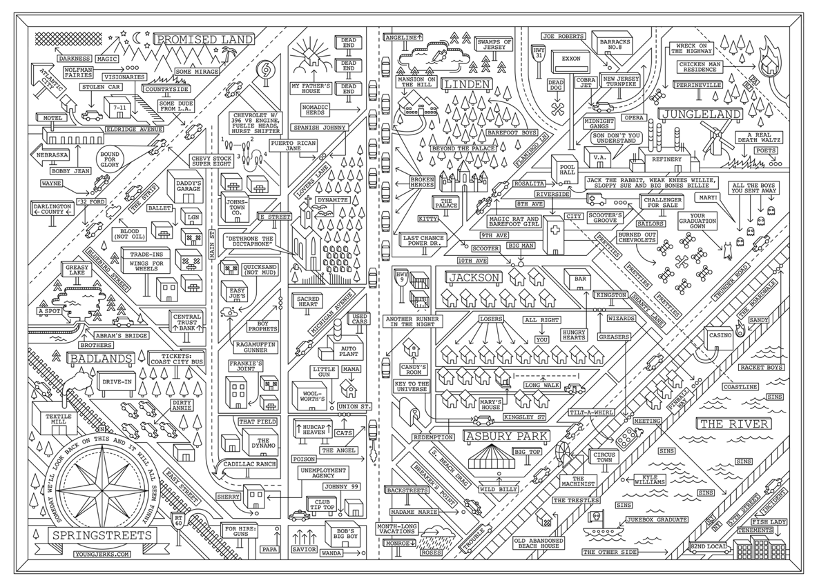 Springstreets started as a personal project for him, and yet at the time I interviewed him he had sold about 1,300 prints of what became the finished product. It began when he decided one day to draw a map of Thunder Road to try to capture the imaginary map in Springsteen’s head as he writes his lyrics. But as Dan scratched the itch, the project grew. He decided to map out the entire Born to Run album. He didn’t stop there. He decided to keep going deeper into the rabbit hole. And then, 1, 2, 3, 4, 5, 6, 7 albums later, he was done. It’s a pretty glorious piece of art that he’s created. He did an initial run of 500 prints. Then another run of 500. And he’s now on the third run of 500, having sold about 1,300 prints in total. I love that what was originally a small side project grew into something that’s now been experienced intimately by the 1,300 people who’ve purchased prints of it. Springstreets got lots of love and was featured in places like Rolling Stone, Esquire, and Paste.